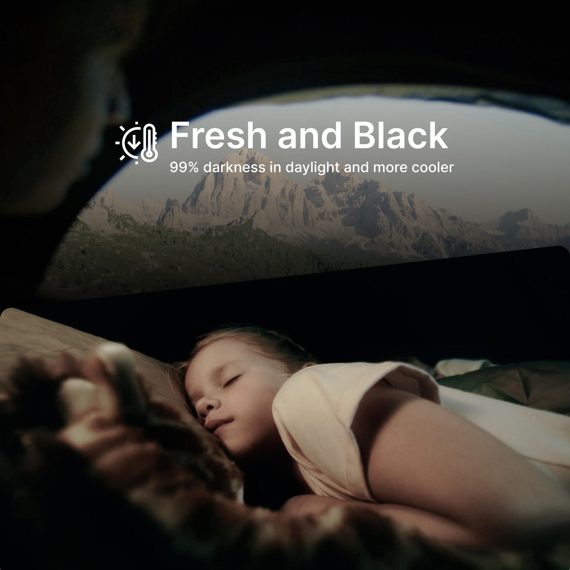 darkness: Fresh & Black patented exterior fabric: 99% darkness even in broad daylight.